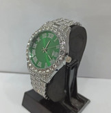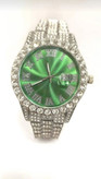 ساعت نگین دار دخترانه و پسرانه،دارای روزشمار،فول نگین،صفحه سبز،بند نقره ای
