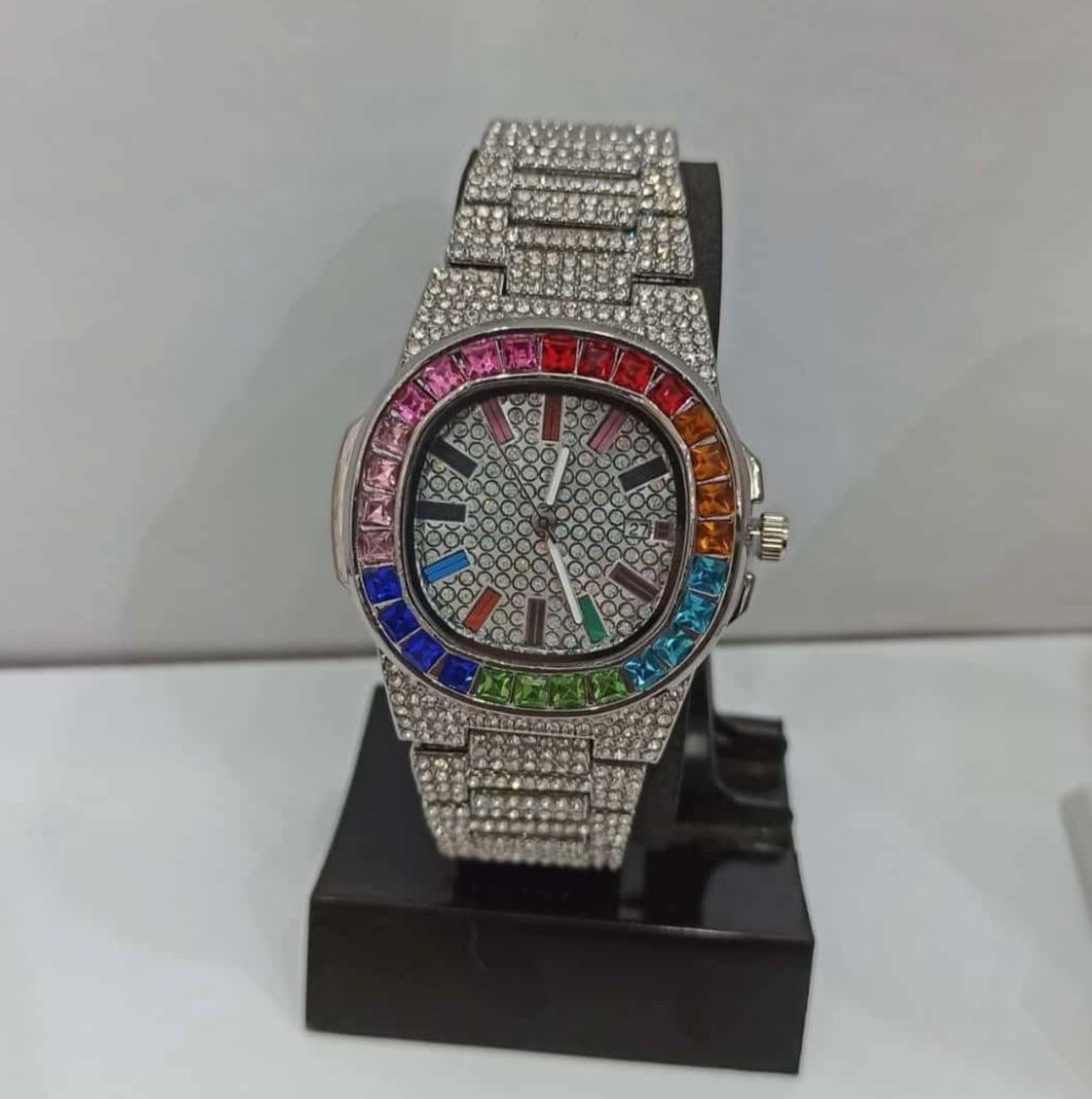 ساعت مچی دخترانه و پسرانه دور نگین رنگی،دارای روزشمار